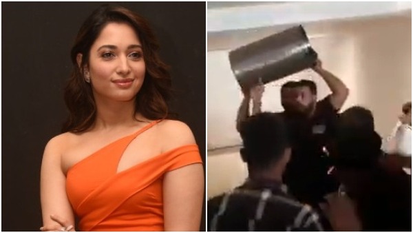 ಬೈಟ್ ತೆಗೆದುಕೊಳ್ಳಲು ಬಂದ ವ್ಯಕ್ತಿಗೆ ತಮನ್ನಾ ಬೌನ್ಸರ್ ನಿಂದಿಸಿದ್ದು, ಕೆಟ್ಟ ಪದ ಬಳಸಿ ಬೈದಿದ್ದಾರೆ ಎನ್ನಲಾಗಿದೆ. ಇದರಿಂದ ಕೆಲ ಕಾಲ ಘಟನಾ ಸ್ಥಳದಲ್ಲಿ ಕೋಲಾಹಲ ಉಂಟಾಗಿತ್ತು. ಈ ಘಟನೆಯ ವಿಡಿಯೋ ವೈರಲ್ ಆಗಿದ್ದು, ವಿಡಿಯೋದಲ್ಲಿ ಪಕ್ಕದಲ್ಲೇ ಇದ್ದ ಕಸದ ಬುಟ್ಟಿಯನ್ನು ಎತ್ತಕೊಂಡು ಹೊಡೆಯಲು ಮುಂದಾಗಿದ್ದು, ಫೋಟೊಗ್ರಾಫರ್ಗಳಿಗೆ ಬೆದರಿಕೆ ಹಾಕಿದ್ದಾರೆ.