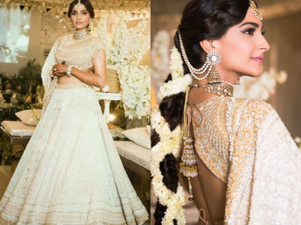 ಸಾಂಪ್ರದಾಯಿಕ ಉಡುಗೆಗಳನ್ನ ತಯಾರು ಮಾಡುವುದರಲ್ಲಿ ಭಾರತದಲ್ಲಿಯೇ ಹೆಸರುವಾಸಿ ಆಗಿರುವ ಡಿಸೈನರ್ ಗಳಾದ ಅಬು ಜಾನಿ ಹಾಗೂ ಸಂದೀಪ್ ಕೋಸ್ಲಾ ಸಿದ್ದಪಡಿಸಿದ ಬಿಳಿ ಬಣ್ಣದ ಲೆಹಂಗಾದಲ್ಲಿ ನವ ವಧು ಸೋನಂ ಕಪೂರ್ ಮಿಂಚಿದರು.