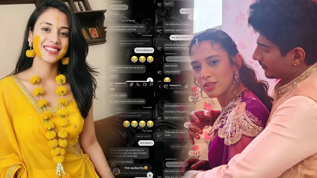 ಆದರೆ.. ಸದ್ಯ ಪಲಾಶ್ ಮುಚ್ಚಲ್ ಸುತ್ತ ಅನುಮಾನದ ಹುತ್ತ ಬೆಳೆದಿದೆ. ಆಕ್ರೋಶ ಕೂಡ ವ್ಯಕ್ತವಾಗುತ್ತಿದೆ. ಸ್ಮ್ರತಿ ಜೊತೆ ಮದುವೆ ನಿಶ್ಚಯವಾಗಿದ್ದರೂ ಬೇರೆ ಮಹಿಳೆಯ ಜೊತೆ ಪಲಾಶ್ ಮುಚ್ಚಲ್ ಮಾಡಿದ್ದಾರೆ ಎನ್ನಲಾದ ಚಾಟ್ನ ಸ್ಕ್ರೀನ್ಶಾಟ್ ವೈರಲ್ ಆಗಿದೆ.