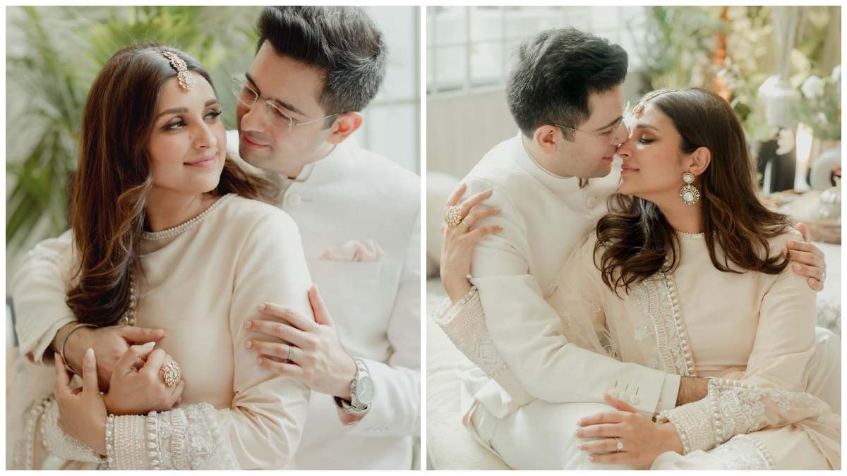 ಪರಿಣಿತಿ- ರಾಘವ್ ನಿಶ್ಚಿತಾರ್ಥದ ಮೊದಲ ಚಿತ್ರಗಳು: ಬಿಳಿ ಬಣ್ಣದ ಉಡುಗೆಯಲ್ಲಿ ಮಿಂಚಿದ ಜೋಡಿ