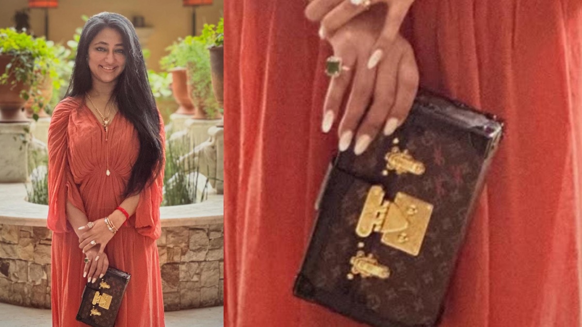 ಆರೆಂಜ್ ಕಲರ್ ಡ್ರೆಸ್ ಹಾಕಿದ್ದು, ಬೆರಳುಗಳಿಗೆ ಡೈಮಂಡ್ ಉಂಗುರವನ್ನ ಹಾಕಿದ್ದಾರೆ. ಹಾಗೇ ಅದಕ್ಕೆ ಮ್ಯಾಚ್ ಆಗುವಂತಹ ಬ್ರೇಸ್ ಲೇಟ್ ಹಾಗೂ ವಾಚ್ ಒಂದನ್ನ ಹಾಕಿದ್ದಾರೆ. ಕೈಗೆ ದಾರವೊಂದನ್ನ ಕಟ್ಟಿದ್ದು, ದೇವಸ್ಥಾನದಲ್ಲಿ ಕಟ್ಟಿದ ದಾರದಂತೆಯೇ ಕಾಣಿಸುತ್ತಿದೆ. ಇದರ ಜೊತೆಗೆ ಒಂದು ಪರ್ಸ್ ಒಂದನ್ನ ಹಿಡಿದು ಕೊಂಡಿದ್ದಾರೆ. Louis Vuitton ಬ್ರ್ಯಾಂಡ್ನ ಪರ್ಸ್ ಇದಾಗಿದೆ. ವಿಜಯಲಕ್ಷ್ಮಿ ದರ್ಶನ್ ಅವರ ಕೈನಲ್ಲಿದ್ದ ಪರ್ಸ್ ಅನ್ನು ಸರ್ಚ್ ಮಾಡಿದಾಗ Louis Vuitton ಬ್ರಾಂಡ್ ಅನ್ನೋದು ಗೊತ್ತಾಗುತ್ತೆ.