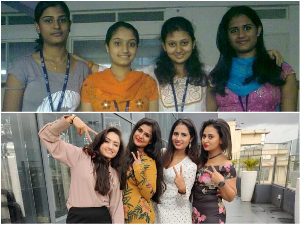 ಅಂದ್ಹಾಗೆ ಇದು ಹತ್ತು ವರ್ಷಗಳ ಹಿಂದಿನ ಫೋಟೋ. ವೈಷ್ಣವಿ ಮತ್ತು ಅಮೂಲ್ಯ ಸೇರಿದಂತೆ ನಾಲ್ಕು ಜನ ಸ್ನೇಹಿತರು ಇರುವ ಈ ಹಳೆ ಫೋಟೋ ಹಾಗೆ, ಮತ್ತೆ ಈಗ ಈ ನಾಲ್ವರು ಒಟ್ಟಿಗೆ ಸೇರಿ ಫೋಟೋ ಕ್ಲಿಕ್ಕಿಸಿಕೊಂಡು ಅಪ್ ಲೋಡ್ ಮಾಡಿದ್ದಾರೆ. ಅಂದು ಕಾಲೇಜಿನಲ್ಲಿ ತೆಗಿಸಿಕೊಂಡಿರುವ ಫೋಟೋಗೆ ಹೋಲಿಕೆ ಮಾಡಿದ್ದಾರೆ. ಅಲ್ಲದೆ ಈ ಫೋಟೋಗೆ ಒಂದು ಕ್ಯಾಪ್ಷನ್ ಕೂಡ ನೀಡಿದ್ದಾರೆ.