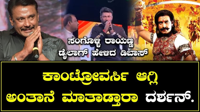 ಚಾಲೆಂಜಿಂಗ್ ಸ್ಟಾರ್ ದರ್ಶನ್ ಇತ್ತೀಚೆಗೆ ಕಾಂಟ್ರವರ್ಸಿಗಳಿಂದ ಹೆಚ್ಚು ಚರ್ಚೆಯಲ್ಲಿದ್ದಾರೆ. "ನನಗೆ ಮಾತನಾಡುವುದಕ್ಕೆ ಭಯವಾಗುತ್ತೆ ಏನೇ ಮಾತಾಡಿದರೂ ಕಾಂಟ್ರವರ್ಸಿ ಆಗುತ್ತೆ" ಎಂದು ಸ್ವತಃ ನಟ ದರ್ಶನ್ ವೇದಿಕೆಯೊಂದರಲ್ಲಿ ಹೇಳಿದ್ದಾರೆ. ಇನ್ನು 'ಸಂಗೊಳ್ಳಿ ರಾಯಣ್ಣ' ಸಿನಿಮಾ ಡೈಲಾಗ್ ಹೇಳಿ ಅಭಿಮಾನಿಗಳನ್ನು ರಂಜಿಸಿದ್ದಾರೆ.