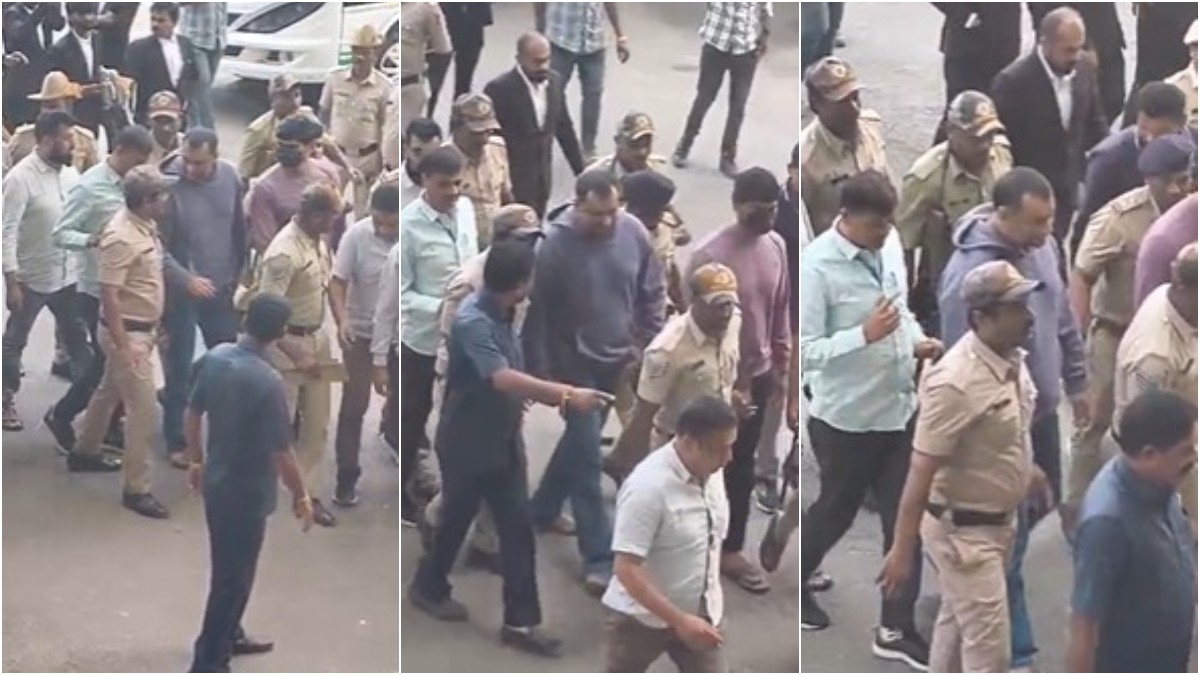 ಬೆಂಗಳೂರಿನ 64ನೇ ಸಿಸಿಹೆಚ್ ಕೋರ್ಟ್ ವಿಚಾರಣೆಗಾಗಿ ದರ್ಶನ್ ಸೇರಿದಂತೆ ಎಲ್ಲಾ ಆರೋಪಿಗಳನ್ನು ಜೈಲಿನಿಂದ ಕರೆದುಕೊಂಡು ಬರಲಾಗಿತ್ತು. ಎಲ್ಲಾ 17 ಆರೋಪಿಗಳು ಕೋರ್ಟ್ಗೆ ಹಾಜರಾಗಬೇಕು ಎಂದು ಸೂಚಿಸಲಾಗಿತ್ತು. ದೋಷಾರೋಪ ಪ್ರಕ್ರಿಯೆ ವಿಚಾರಣೆಗಾಗಿ ಕರೆದುಕೊಂಡು ಬರಲಾಗಿತ್ತು. ಎರಡೂವರೆ ತಿಂಗಳ ಬಳಿಕ ದರ್ಶನ್ ಕ್ಯಾಮರಾ ಕಣ್ಣಿಗೆ ಬಿದ್ದಿದ್ದಾರೆ. ದರ್ಶನ್ ಜೈಲಿನಿಂದ ಹೊರ ಬಂದು ಪೊಲೀಸ್ ವಾಹನ ಏರಿ ಕೋರ್ಟ್ಗೆ ಆಗಮಿಸಿರುವ ಫೋಟೊ, ವೀಡಿಯೋ ವೈರಲ್ ಆಗ್ತಿದೆ.