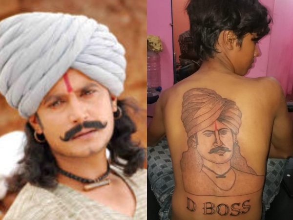 ಇಲ್ಲೊಬ್ಬ ಅಭಿಮಾನಿ ದರ್ಶನ್ ಮೇಲಿನ ಅಭಿಮಾನವನ್ನು ವ್ಯಕ್ತಪಡಿಸಿದ ರೀತಿ ನೋಡಿದ್ರೆ ನಿಜಕ್ಕು ಶಾಕ್ ಆಗುತ್ತೆ. ಯಾಕೆಂದ್ರೆ ಬೆನ್ನಮೇಲೆ ದೊಡ್ಡದಾಗಿ ಟ್ಯಾಟು ಹಾಕಿಕೊಂಡಿದ್ದಾರೆ. ದರ್ಶನ್ ಅಭಿನಯದ 'ಸಂಗೊಳ್ಳಿ ರಾಯಣ್ಣ' ಚಿತ್ರದ ಟ್ಯಾಟು ಇದಾಗಿದೆ. ಚಿತ್ರದ ಕೆಳಗೆ ಡಿ ಬಾಸ್ ಎಂದು ಅಷ್ಟೆ ದೊಡ್ಡದಾಗಿ ಬರೆದುಕೊಂಡಿದ್ದಾರೆ.
