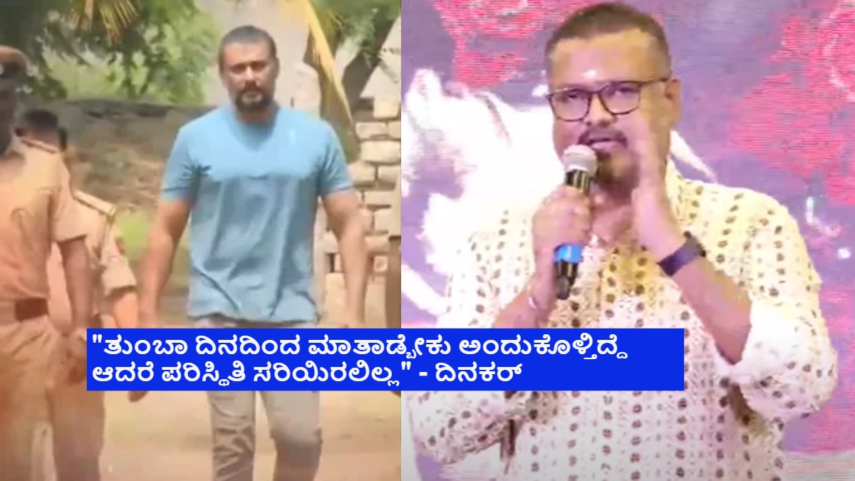 ದರ್ಶನ್ ಜೈಲಿಗೆ ಹೋದ ದಿನದಿಂದಲೂ ದಿನಕರ್ ತೂಗುದೀಪ ಎಲ್ಲೂ ಪ್ರತಿಕ್ರಿಯೆ ನೀಡಿರಲಿಲ್ಲ. ಆದ್ರೀಗ ದರ್ಶನ್ ಫ್ಯಾನ್ಸ್ ಎದುರು ದಿನಕರ್ ಗುಡುಗಿದ್ದಾರೆ. "ತುಂಬಾ ದಿನದಿಂದ ಮಾತಾಡಬೇಕು ಅಂತ ಅಂದುಕೊಳ್ಳುತ್ತಿದ್ದೆ. ಪರಿಸ್ಥಿತಿ ಸರಿಯಿರಲಿಲ್ಲ. ಏನೂ ಮಾತಾಡುವುದಕ್ಕೆ ಆಗುತ್ತಿರಲಿಲ್ಲ. ಈ ವೇದಿಕೆಯನ್ನು ಬಳಸಿಕೊಂಡು ಎಲ್ಲಾ ಸೆಲೆಬ್ರಿಟಿಗಳಿಗೆ ಧನ್ಯವಾದಗಳನ್ನು ತಿಳಿಸುತ್ತೇನೆ. ಯಾಕಂದ್ರೆ, ಇವತ್ತು ನಾವೇನು ಇದ್ದೀವಿ, ಏನು ಹೆಸರು ಮಾಡಿದ್ದೀವಿ ಅದೆಲ್ಲ ನಿಮ್ಮಿಂದ. ನಮ್ಮ ಎಫರ್ಟ್ಗೆ ಪ್ರೋತ್ಸಾಹವನ್ನು ಕೊಡುತ್ತಿದ್ದೀರ. ಅದೆಲ್ಲ ನಮ್ಮ ಡಿ ಬಾಸ್ ಫ್ಯಾನ್ಸ್, ಕನ್ನಡ ಚಿತ್ರಪ್ರೇಮಿಗಳಿಗೆ ಸಲ್ಲಬೇಕು." ಎಂದು ದಿನಕರ್ ಹೇಳಿದ್ದಾರೆ.