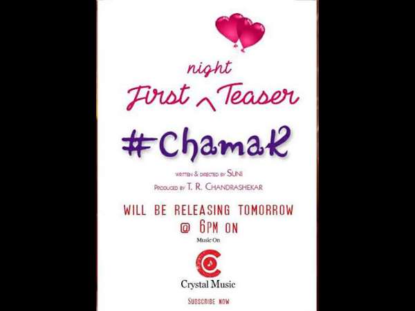 ಸಿಂಪಲ್ ಸುನಿ ನಿರ್ದೇಶನದ ಬಿಡುಗಡೆಗೆ ತಯಾರಾಗಿರುವ ಸಿನಿಮಾ 'ಚಮಕ್'. ಪೋಸ್ಟ್ ಪ್ರೊಡಕ್ಷನ್ ಮುಗಿಸಿ ಪ್ರಮೋಷನ್ ಗಾಗಿ ರೆಡಿಯಾಗಿರುವ 'ಚಮಕ್' ಸಿನಿಮಾದ 'ಫಸ್ಟ್ ನೈಟ್' ಟೀಸರ್ ನಾಳೆ ರಿಲೀಸ್ ಮಾಡುವುದಾಗಿ ಸಿಂಪಲ್ ಸುನಿ ತಿಳಿಸಿದ್ದಾರೆ.