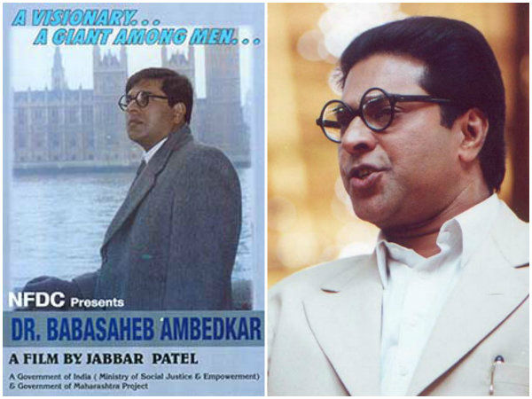 ಖ್ಯಾತ ಮರಾಠಿ ಚಿತ್ರ ನಿರ್ದೇಶಕರಾದ ಜಬ್ಬರ್ ಪಟೇಲ್ ರವರು ಡೈರೆಕ್ಟ್ ಮಾಡಿದ್ದ 'ಡಾ.ಬಾಬಾಸಾಹೇಬ್ ಅಂಬೇಡ್ಕರ್' ಚಿತ್ರದಲ್ಲಿ ಅಂಬೇಡ್ಕರ್ ಪಾತ್ರವನ್ನು ಮಾಲಿವುಡ್ ಖ್ಯಾತ ನಟ ಮಮ್ಮೂಟ್ಟಿ ರವರು ನಿರ್ವಹಿಸಿದ್ದರು. ಈ ಚಿತ್ರದ ನಟನೆಗಾಗಿ ಮಮ್ಮೂಟ್ಟಿ ಅವರಿಗೆ ಚಿತ್ರ ಬಿಡುಗಡೆಯಾದ ವರ್ಷವೇ ರಾಷ್ಟ್ರ ಚಲನಚಿತ್ರ ಪ್ರಶಸ್ತಿ ಲಭಿಸಿತ್ತು. ಅಲ್ಲದೇ ಈ ಚಿತ್ರದಲ್ಲಿ ಸೋನಾಲಿ ಕುಲ್ಕರ್ಣಿ, ಮೋಹನ್ ಗೋಖಲೇ ಮತ್ತು ಮ್ರಿನಾಲ್ ಕುಲ್ಕರ್ಣಿ ಅಭಿನಯಿಸಿದ್ದರು.