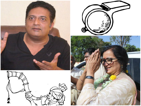 ಇದೀಗ, ಪ್ರಕಾಶ್ ರೈ ಮತ್ತು ಸುಮಲತಾ ಅವರಿಗೆ ಚುನಾವಣೆ ಆಯೋಗದಿಂದ ಗುರುತಿನ ಚಿಹ್ನೆ ನೀಡಲಾಗಿದೆ. ಪ್ರಕಾಶ್ ರೈಗೆ ವಿಶಲ್ ಚಿಹ್ನೆ ಸಿಕ್ಕಿದೆ. ಆ ಕಡೆ ಸುಮಲತಾಗೆ ಕಹಳೆ ಊದುತ್ತಿರುವ ವ್ಯಕ್ತಿಯ ಚಿಹ್ನೆ ಸಿಕ್ಕಿದೆ.