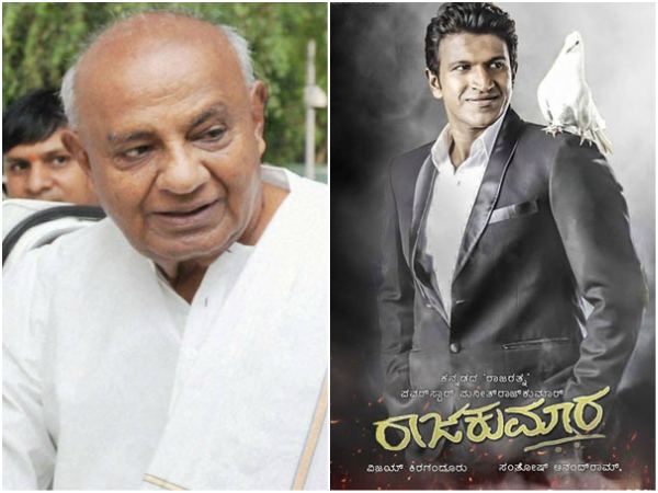 ಹೌದು, ಮೊನ್ನೆಯಷ್ಟೇ ಹ್ಯಾಟ್ರಿಕ್ ಹೀರೋ ಶಿವರಾಜ್ ಕುಮಾರ್ ಅಭಿನಯದ 'ಬಂಗಾರ s/o ಬಂಗಾರದ ಮನುಷ್ಯ' ಚಿತ್ರವನ್ನ ವೀಕ್ಷಿಸಿ, ಚಿತ್ರತಂಡದ ಬೆನ್ನುತಟ್ಟಿದ್ದ ಎಚ್.ಡಿ.ದೇವೇಗೌಡರು ಇಂದು 'ರಾಜಕುಮಾರ' ಚಿತ್ರವನ್ನ ನೋಡುವ ಮನಸ್ಸು ಮಾಡಿದ್ದರು.['ರಾಜಕುಮಾರ'ನ ಇಂಟರ್ ವಲ್ ದೃಶ್ಯ ನೋಡಿ ಭಾವುಕರಾದ ಮಾಜಿ ಪ್ರಧಾನಿ]