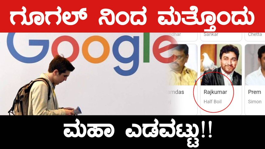 ಡಾ.ರಾಜ್ಕುಮಾರ್ ಭಾವಚಿತ್ರವನ್ನು ಪರಭಾಷೆಯ ಸಿನಿಮಾ ಜೊತೆಗೆ ಸೇರಿಸಿದ್ದಲ್ಲದೆ ರಾಜ್ಕುಮಾರ್ ಹೆಸರ ಕೆಳಗೆ 'ಹಾಫ್ ಬಾಯ್ಲ್' ಎಂದು ಹೆಸರನ್ನು ನೀಡಲಾಗಿದೆ. ಈ ಅಪಸವ್ಯ ನಡೆದಿರುವುದು ಗೂಗಲ್ನಿಂದ.