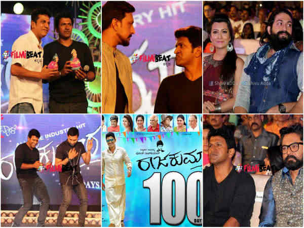 ಪವರ್ ಸ್ಟಾರ್ ಪುನೀತ್ ರಾಜ್ ಕುಮಾರ್ ಅಭಿನಯದ 'ರಾಜಕುಮಾರ' ಚಿತ್ರದ ಶತದಿನೋತ್ಸವ ಕಾರ್ಯಕ್ರಮ ನಿನ್ನೆಯಷ್ಟೆ (ಜುಲೈ 7) ಬೆಂಗಳೂರಿನ ಅರಮನೆ ಮೈದಾನದಲ್ಲಿ ಅದ್ಧೂರಿಯಾಗಿ ನಡೆಯಿತು.