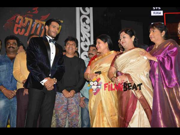 ನಿಖಿಲ್ ಕುಮಾರ್ ರವರ ಚೊಚ್ಚಲ ಸಿನಿಮಾ 'ಜಾಗ್ವಾರ್' ಮುಹೂರ್ತ ಸಮಾರಂಭದಲ್ಲಿ ಹ್ಯಾಟ್ರಿಕ್ ಹೀರೋ ಶಿವರಾಜ್ ಕುಮಾರ್, ರೆಬೆಲ್ ಸ್ಟಾರ್ ಅಂಬರೀಶ್, ನಿರ್ಮಾಪಕ ರಾಕ್ ಲೈನ್ ವೆಂಕಟೇಶ್, ಹಿರಿಯ ನಟಿ ಜಯಮಾಲ, ಬಿ.ಸರೋಜ ದೇವಿ ಮತ್ತು ಜಯಂತಿ ಭಾಗಿಯಾದರು.[ಮಗನಿಗೆ ಮರುನಾಮಕರಣ ಮಾಡಿದ ಕುಮಾರಸ್ವಾಮಿ..!]