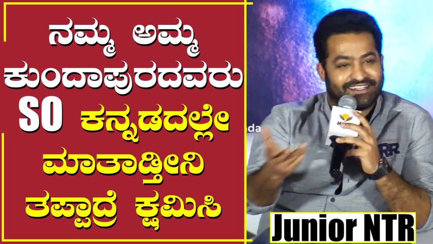 'RRR' ಸಿನಿಮಾದ ಟ್ರೈಲರ್ನ ಮತ್ತೊಂದು ಹೈಲೆಟ್ ಅಂದರೆ, ಜೂ.ಎನ್ಟಿಆರ್. ಯಂಗ್ ಟೈಗರ್ ಸ್ವತಃ ತಾವೇ ಕನ್ನಡದಲ್ಲಿ ಡಬ್ ಮಾಡಿದ್ದಾರೆ. ಎನ್ಟಿಆರ್ ಸ್ವಲ್ಪ ಕಷ್ಟ ಪಟ್ಟು ಕನ್ನಡ ಮಾತಾಡಿದ್ದರೂ, ಅವರ ಪ್ರಯತ್ನಕ್ಕೆ ಕನ್ನಡಿಗರು ಭೇಷ್ ಅಂದಿದ್ದಾರೆ. ಇದೇ ವಿಷಯಕ್ಕೆ ಸಂಬಂಧಿಸಿದಂತೆ ಇಂದು (ಡಿಸೆಂಬರ್10) ಬೆಂಗಳೂರಿನಲ್ಲಿ ನಡೆದ ಪತ್ರಿಕಾಗೋಷ್ಟಿಯಲ್ಲಿ ಜೂ.ಎನ್ಟಿಆರ್ ಕನ್ನಡದಲ್ಲಿಯೇ ಮಾತಾಡಿದ್ದಾರೆ. ಅವರ ತಾಯಿ ಕನ್ನಡಿಗರ ಮುಂದೆ ತಲೆ ತಗ್ಗಿಸುವಂತಹ ಕೆಲಸ ಮಾಡಬೇಡ ಅಂದಿದ್ದನ್ನು ನೆನಪಿಸಿಕೊಂಡಿದ್ದಾರೆ.