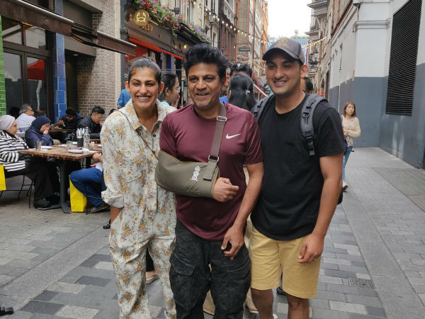 ಹ್ಯಾಟ್ರಿಕ್ ಹೀರೋ ಶಿವರಾಜ್ ಕುಮಾರ್ ಸದ್ಯ ಲಂಡನ್ ನಲ್ಲಿ ವಿಶ್ರಾಂತಿ ಪಡೆಯುತ್ತಿದ್ದಾರೆ. ಇತ್ತೀಚಿಗಷ್ಟೆ ಬಲ ಭುಜದ ಸರ್ಜರಿ ಮಾಡಿಸಿಕೊಂಡಿರುವ ಶಿವಣ್ಣ ಈಗ ರೆಸ್ಟ್ ಮೂಡ್ ನಲ್ಲಿದ್ದಾರೆ. ಲಂಡನ್ ನಲ್ಲಿರುವ ಶಿವಣ್ಣ ಅವರನ್ನು ಅನೇಕ ಜನ ಸ್ನೇಹಿತರು, ಕುಟುಂಬದವರು ಮತ್ತು ಆಪ್ತರು ಶಿವಣ್ಣ ಭೇಟಿಯಾಗಿ ಅರೋಗ್ಯ ವಿಚಾರಿಸುತ್ತಿದ್ದಾರೆ.