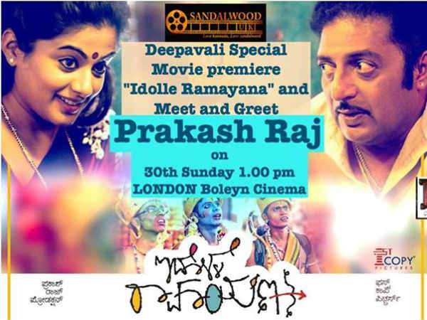 'ಯುರೋಪ್' ಹಾಗೂ 'ಯು.ಕೆ' ದೇಶಗಳಲ್ಲಿ ಪ್ರಕಾಶ್ ರೈ ಅವರ 'ಇದೊಳ್ಳೆ ರಾಮಾಯಣ' ಪ್ರೀಮಿಯರ್ ಶೋ ಆಗ್ತಿದೆ. ವಿಶೇಷ ಅಂದ್ರೆ ಅಕ್ಟೋಬರ್ 30 ರಂದು ಸ್ವತಃ ಪ್ರಕಾಶ್ ರೈ ಅವರು, ತಮ್ಮ ಕುಟುಂಬ ಸಮೇತ ಲಂಡನ್ ಗೆ ಭೇಟಿ ನೀಡಲಿದ್ದಾರೆ ಎಂದು ಅಲ್ಲಿನ ಅಯೋಜಕರು ಸ್ವಷ್ಟಪಡಿಸಿದ್ದಾರೆ.['ರೈ' ರಾಮಾಯಣಕ್ಕೆ ಒನ್ ಇಂಡಿಯಾ ಓದುಗರಿಂದ ಪರ-ವಿರೋಧ ಕಾಮೆಂಟ್]