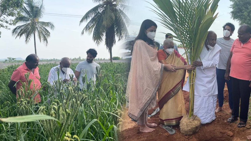 ದೇವೇಗೌಡರು ಹೊಲದಲ್ಲಿ ನಿಂತು ರಾಗಿ ತೆನೆ ಪರಿಶೀಲಿಸುತ್ತಿರುವ ವಿಡಿಯೋ ಹಂಚಿಕೊಂಡಿರುವ ನಿಖಿಲ್ ಕುಮಾರಸ್ವಾಮಿ, 'ರಾಮನಗರದ ಕೇತಗಾನಹಳ್ಳಿಯಲ್ಲಿ ನಾನು ಮತ್ತು ಕುಮಾರಣ್ಣನವರು ಅತ್ಯಂತ ಪ್ರೀತಿ, ಕಕ್ಕುಲತೆಗಳಿಂದ ಕೃಷಿ ಮಾಡಿದ್ದೇವೆ. ನಮ್ಮಿಬ್ಬರ ಈ ಕೃಷಿ ಕಾರ್ಯವನ್ನು ಮಣ್ಣಿನ ಮಗ, ರೈತರ ನಾಯಕ ದೇವೇಗೌಡರು ಖುದ್ದು ವೀಕ್ಷಿಸಿ ಖುಷಿಪಟ್ಟ ಸಂದರ್ಭವಿದು' ಎಂದಿದ್ದಾರೆ. ವಿಡಿಯೋದಲ್ಲಿ ಕುಮಾರಸ್ವಾಮಿ ಸಹ ಇದ್ದಾರೆ.