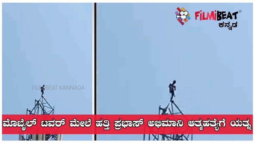 ಮೊಬೈಲ್ ಟವರ್ ಮೇಲೆ ಹತ್ತಿ ಪ್ರಭಾಸ್ ಅಭಿಮಾನಿ ಆತ್ಮಹತ್ಯೆಗೆ ಯತ್ನ