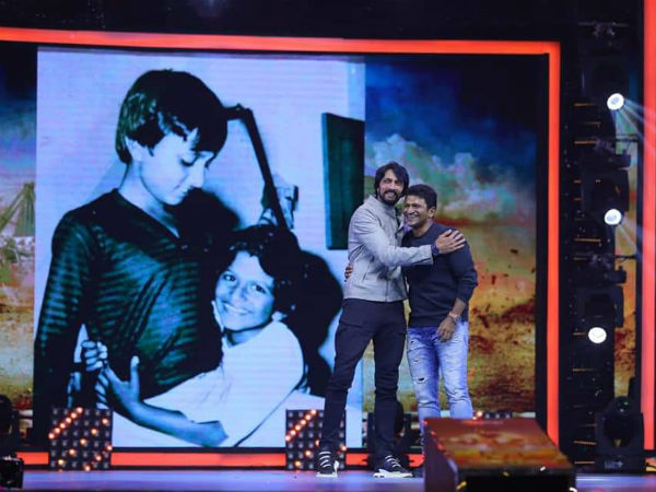 ಈ ಹಿಂದೆ ಅಂದ್ರೆ ಪವರ್ ಸ್ಟಾರ್ ಪುನೀತ್ ರಾಜ್ ಕುಮಾರ್ ಅಭಿನಯದ 'ರಾಜಕುಮಾರ' ಶತದಿನೋತ್ಸವ ಕಾರ್ಯಕ್ರಮಕ್ಕೆ ಸುದೀಪ್ ಗೆಸ್ಟ್ ಆಗಿದ್ದರು. ರಾಜಕುಮಾರನ ವೇದಿಕೆ ಮೇಲೆ ಸುದೀಪ್ ಮತ್ತು ಪುನೀತ್ ಇಬ್ಬರು ಡ್ಯಾನ್ಸ್ ಮಾಡಿ ಅಭಿಮಾನಿಗಳನ್ನು ರಂಜಿಸಿದ್ದರು. ಮತ್ತದೆ ಬಾಲ್ಯದ ಫೊಟೋದ ನೆನಪನ್ನು ಮೆಲಕುಹಾಕಿದ್ದರು. ಈಗ ಪೈಲ್ವಾನ್ ಆಡಿಯೋ ರಿಲೀಸ್ ಕಾರ್ಯಕ್ರಮದಲ್ಲೂ ಪುನೀತ್ ಮತ್ತು ಸುದೀಪ್ ಇಬ್ಬರು ಒಟ್ಟಿಗೆ ಕಾಣಿಸಿಕೊಳ್ಳುವ ಇಬ್ಬರು ಸಂತಸ ಪಟ್ಟು ಅಭಿಮಾನಿಗಳನ್ನು ರಂಜಿಸಿದ್ದಾರೆ.