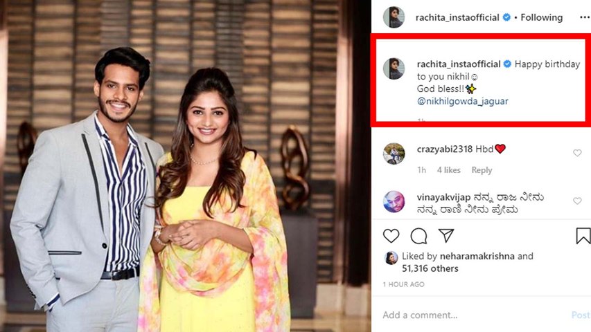 Rachitha dedicates a post on instagram for Nikhil on his birthday | Rachitha Ram | Nihkil Kumarswamy