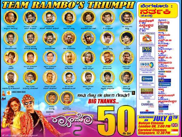 50 ದಿನ ಪೂರೈಸಿದ ಶರಣ್ ಅಭಿನಯದ 'Rambo 2' ಸಿನಿಮಾ