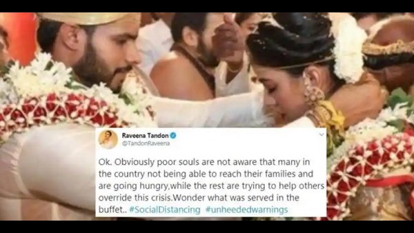 ಈ ಬಗ್ಗೆ ಟ್ವೀಟ್ ಮಾಡಿದ್ದ ರವೀನಾ ಟಂಡನ್, ಮದುವೆ ಕುರಿತಾಗಿ ಅಸಮಾಧಾನ ವ್ಯಕ್ತಪಡಿಸಿದ್ದರು. ಇಂಥಹಾ ಸಮಯದಲ್ಲಿ ಸಂಭ್ರಮದ ಆಚರಣೆಗಳ ಬಗ್ಗೆ ತಕರಾರು ಅವರ ಟ್ವೀಟ್ನಲ್ಲಿ ಇಣುಕುತ್ತಿತ್ತು. ಆದರೆಕೋ ಅವರು ಟ್ವೀಟ್ ಅನ್ನೇ ಡಿಲೀಟ್ ಮಾಡಿಬಿಟ್ಟಿದ್ದಾರೆ.