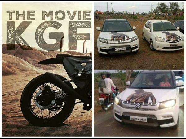 ಇಲ್ಲಿಯವರೆಗೂ 'ಕೆ.ಜಿ.ಎಫ್' ಸಿನಿಮಾತಂಡದಿಂದ ಎರಡು ಪೋಸ್ಟರ್ ಬಿಟ್ಟರೇ ಮತ್ತೇನೂ ರಿಲೀಸ್ ಆಗಿಲ್ಲ. ಅದನ್ನ ಇಷ್ಟಪಟ್ಟಿರುವ ಯಶ್ ಅಭಿಮಾನಿಗಳು ತಮ್ಮ ಕಾರ್ ಗಳ ಮೇಲೇ ಯಶ್ ಫಸ್ಟ್ ಲುಕ್ ಅನ್ನ ಹಾಕಿಸಿಕೊಂಡಿದ್ದಾರೆ. ಕಾರ್ ಇಲ್ಲದ ಅಭಿಮಾನಿಗಳು ತಮ್ಮ ಬೈಕ್ ನಂಬರ್ ಪ್ಲೇಟ್ ಮೇಲೆ 'ಕೆ.ಜಿ.ಎಫ್' ಪೋಸ್ಟರ್ ನಿಂದ ಡಿಸೈನ್ಸ್ ಮಾಡಿಸಿಕೊಂಡಿದ್ದಾರೆ.