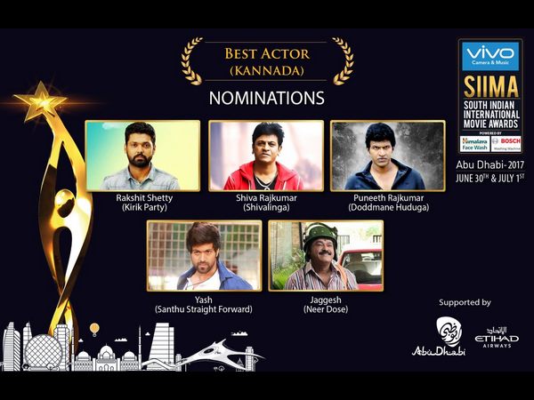 ನಟ ಶಿವರಾಜ್ ಕುಮಾರ್ (ಶಿವಲಿಂಗ), ಪುನೀತ್ ರಾಜ್ ಕುಮಾರ್(ದೊಡ್ಮನೆ ಹುಡ್ಗ), ಜಗ್ಗೇಶ್ (ನೀರ್ ದೋಸೆ,) ಯಶ್, ರಕ್ಷಿತ್ ಶೆಟ್ಟಿ (ಕಿರಿಕ್ ಪಾರ್ಟಿ) ಅತ್ಯುತ್ತಮ ನಟ ವಿಭಾಗದಲ್ಲಿ ನಾಮಾಂಕಿತರಾಗಿದ್ದಾರೆ.