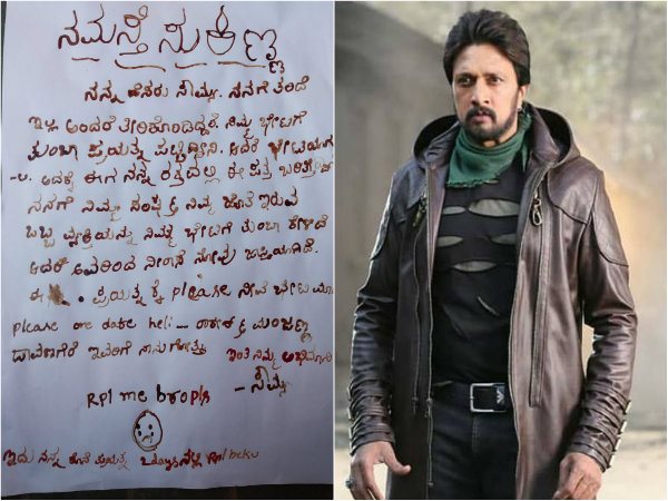 'ಇದು ನನ್ನ ಕೊನೆ ಪ್ರಯತ್ನ' ರಕ್ತದಲ್ಲಿ ಪತ್ರ ಬರೆದ ಅಭಿಮಾನಿ: ಸುದೀಪ್ ಬೇಸರ
