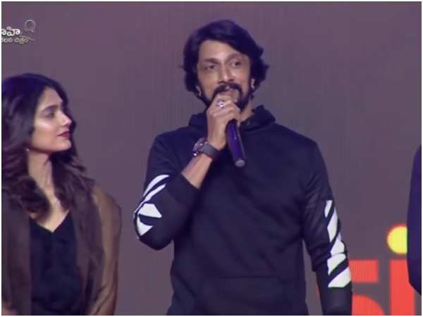 'ಎಲ್ಲರಿಗೂ ನಮಸ್ಕಾರ..' ಎಂದು ಕನ್ನಡದಲ್ಲಿ ಮಾತನಾಡಿದ ಕಿಚ್ಚ ನಂತರ ತೆಲುಗಿನಲ್ಲಿ ನಮಸ್ಕಾರ ಹೇಳಿದರು. ಬಳಿಕ ತಮಗೆ ತೆಲುಗು ಮಾತನಾಡಲು ಸರಿಯಾಗಿ ಬರುವುದಿಲ್ಲ ಎಂದು ಹೇಳಿ ಇಂಗ್ಲೀಷ್ ನಲ್ಲಿ ಮಾತು ಮುಂದುವರೆಸಿದರು.