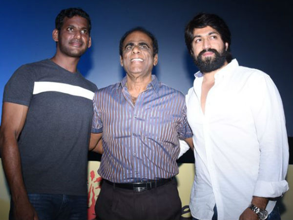 'ಕೆ.ಜಿ.ಎಫ್' ಚಿತ್ರದ ಮೇಲೆ ವಿಶಾಲ್ ಗೆ ಬೆಟ್ಟದಷ್ಟು ನಂಬಿಕೆ ಇದೆ. ಹೀಗಾಗಿ, ತಮಿಳುನಾಡಿನಲ್ಲಿ 'ಕೆ.ಜಿ.ಎಫ್' ಚಿತ್ರವನ್ನ ವಿಶಾಲ್ ಬಿಡುಗಡೆ ಮಾಡಲಿದ್ದಾರೆ. ಪುತ್ರ ವಿಶಾಲ್ ತೆಗೆದುಕೊಂಡ ಈ ನಿರ್ಧಾರಕ್ಕೆ ಅವರ ತಂದೆ ಖ್ಯಾತ ನಿರ್ಮಾಪಕ ಜಿ.ಕೆ.ರೆಡ್ಡಿ ಧನ್ಯವಾದ ತಿಳಿಸಿದ್ದಾರೆ. ಯಾಕಂದ್ರೆ, ವಿಶಾಲ್ ತಂದೆ ಜಿ.ಕೆ.ರೆಡ್ಡಿ ಅಪ್ಪಟ ಕನ್ನಡ ಪ್ರೇಮಿ.