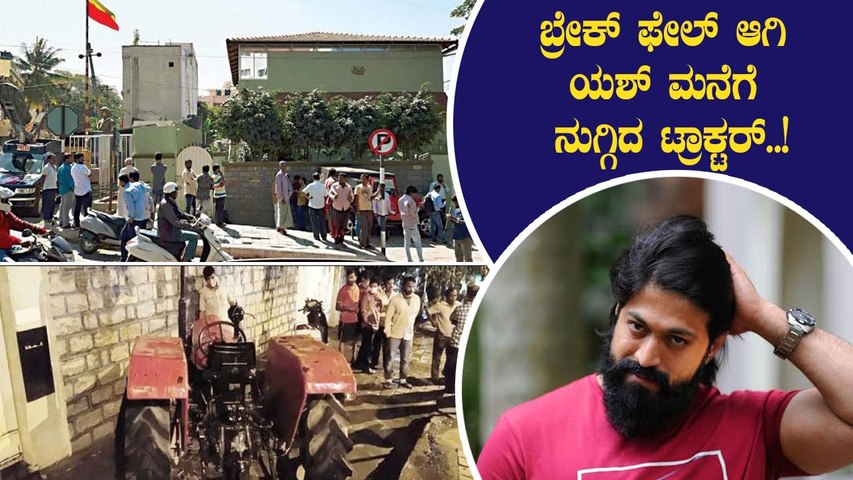 ಯಶ್ ಮನೆಗೆ ಡಿಕ್ಕಿಹೊಡೆದ ಟ್ರ್ಯಾಕ್ಟರ್ | Tractor hits Yash home | Filmibeat Kannada