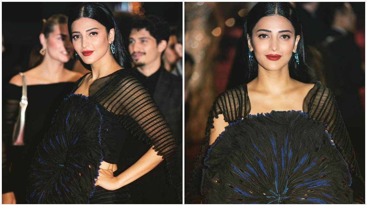 ಎರಡು ಬೇರೆ ಬೇರೆ ಲುಕ್ನಲ್ಲಿ ಶ್ರುತಿ ಹಾಸನ್ ಕಾನ್ ಫೆಸ್ಟಿವಲ್ನಲ್ಲಿ ದರ್ಶನ ಕೊಟ್ಟಿದ್ದಾರೆ. ಡಿಸೈನರ್ ವೈಶಾಲಿ ಡಿಸೈನ್ ಮಾಡಿದ್ದ ಕಾಸ್ಟ್ಯೂಮ್ನಲ್ಲಿ ಶ್ರುತಿ ಮಿಂಚಿದ್ಧಾರೆ. ಕಪ್ಪು ಬಣ್ಣದ ಕೋಆರ್ಡ್ ಸೆಟ್ ಡ್ರೆಸ್ನಲ್ಲಿ ಶ್ರುತಿ ಗಮನ ಸೆಳೆದಿದ್ದಾರೆ. ಮುಂಭಾಗದಲ್ಲಿ ಕಪ್ಪು ಹಾಗೂ ನೀಲಿ ಮಿಶ್ರಿತ ಬಣ್ಣದ ಹೂವು ಇರುವಂತಹ ಡಿಸೈನ್ ಡ್ರೆಸ್ ಶ್ರುತಿ ಅಂದ ಹೆಚ್ಚಿಸಿದೆ. ಇನ್ನು ಕೆಂಪು ಬಣ್ಣದ ಲಿಪ್ಸ್ಟಿಕ್, ಹೈ ಹೀಲ್ಡ್ ಚಪ್ಪಲಿ ತೊಟ್ಟು ಕಮಾಲ್ ಮಾಡಿದ್ದಾರೆ.