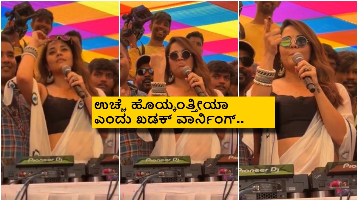 ಇತ್ತೀಚೆಗೆ ಹೈದರಾಬಾದ್ನಲ್ಲಿ ಆಯೋಜಿಸಿದ್ದ ಹೋಳಿ ಸೆಲೆಬ್ರೇಷನ್ ಕಾರ್ಯಕ್ರಮಕ್ಕೆ ಅನಸೂಯ ಭಾರಧ್ವಜ್ ಹಾಜರಾಗಿದ್ದರು. ಬಿಳಿ ಸೀರೆ ಉಟ್ಟು ಹೋಳಿ ಹಚ್ಚಿಕೊಂಡು ಡ್ಯಾನ್ಸ್ ಮಾಡಿ ಸಂಭ್ರಮಿಸಿದ್ದಾರೆ. ಈ ವೇಳೆ ಅನಸೂಯ ವೇದಿಕೆಯಲ್ಲಿದ್ದಾಗ ಎದುರಿನ ಗುಂಪಿನಲ್ಲಿದ್ದ ವ್ಯಕ್ತಿಯೊಬ್ಬ 'ಆಂಟಿ' ಎಂದು ಕೂಗಿದ್ದಾನೆ. ಇದ್ದಕ್ಕಿದಂತೆ ಗರಂ ಆಗಿದ್ದ ಅನಸೂಯ ಧೈರ್ಯ ಇದ್ದರೆ ವೇದಿಕೆ ಮೇಲೆ ಬಾರೋ ಎಂದು ಸವಾಲ್ ಹಾಕಿದ್ದಾರೆ.