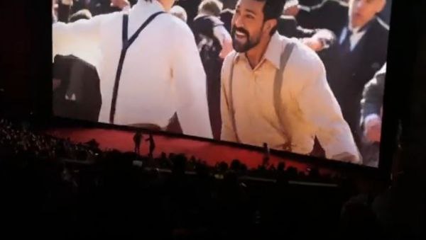 ಆರ್ ಆರ್ ಆರ್ ಚಿತ್ರದ ದೃಶ್ಯಗಳಿಗೆ ಕಿರುಚುತ್ತಾ, ಚಪ್ಪಾಳೆ ತಟ್ಟುತ್ತಾ ಪ್ರೋತ್ಸಾಹ ನೀಡಿದ ಪ್ರೇಕ್ಷಕರು ನಾಟ್ಟು ನಾಟು ಹಾಡಿಗೆ ಚಿತ್ರಮಂದಿರದ ಪರದೆಯ ಮುಂದೆ ಬಂದು ಕುಣಿದು ಕುಪ್ಪಳಿಸಿದ್ದಾರೆ. ಈ ದೃಶ್ಯವನ್ನು ಲಾಸ್ ಏಂಜಲೀಸ್ ಮಾಧ್ಯಮಗಳು ಟ್ವಿಟರ್ ಖಾತೆಯಲ್ಲಿ ಹಂಚಿಕೊಂಡಿದ್ದು, ಇದನ್ನು ರೀಟ್ವೀಟ್ ಮಾಡಿರುವ ಆರ್ ಆರ್ ಆರ್ ಚಿತ್ರದ ಅಧಿಕೃತ ಟ್ವಿಟ್ಟರ್ ಖಾತೆ ಇದು ಹೈದರಾಬಾದಿನ ಆರ್ ಟಿ ಎಕ್ಸ್ ರಸ್ತೆಯ ಚಿತ್ರಮಂದಿರವಲ್ಲ, ಅಮೇರಿಕಾದ ಚಿತ್ರಮಂದಿರ, ಅಲ್ಲಿಯೂ ಸಹ ಆರ್ ಆರ್ ಆರ್ ಹವಾ ಜೋರಾಗಿದೆ ಎಂದು ಬರೆದುಕೊಂಡಿದೆ.