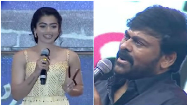 ''ಚಲೋ' ಚಿತ್ರದ ಕಾರ್ಯಕ್ರಮಕ್ಕೆ ನನ್ನ ಆಹ್ವಾನಿಸಿದರು. ಅಲ್ಲಿಗೆ ಹೋದರೆ ಇದೇ (ರಶ್ಮಿಕಾ ಮಂದಣ್ಣ) ಹುಡುಗಿ. ನಮ್ಮದೇ 'ಗೀತ ಗೋವಿಂದಂ' ಚಿತ್ರದ ಕಾರ್ಯಕ್ರಮಕ್ಕೆ ಹೋದೆ. ಅಲ್ಲೂ ಇದೇ ಹುಡುಗಿ. ಈಗ ಇಲ್ಲಿಗೆ ಬಂದೆ. ಇಲ್ಲೂ ರಶ್ಮಿ ಮಂಡುಕನೇ ಇದ್ದಾರೆ. ನನ್ನನ್ನ ನಿಮ್ಮ ಸಿನಿಮಾಗಳಿಗೆ ಕಾಂಟ್ರ್ಯಾಕ್ಟ್ ತೆಗೆದುಕೊಂಡಿದ್ದೀರಾ.?'' ಎಂದು ತಮಾಷೆಯಾಗಿ ರಶ್ಮಿಕಾ ಮಂದಣ್ಣ ರನ್ನ ಚಿರಂಜೀವಿ ಕೇಳಿದರು.