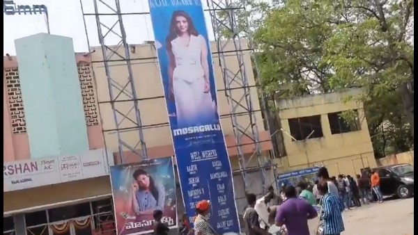 ಹೀರೋಗಳ ಟ್ರೆಂಡ್ ನಡುವೆಯೂ ನಟಿ ಕಾಜಲ್ ಅಗರ್ ವಾಲ್ಗೆ ವಿಶೇಷವಾದ ಗೌರವ ಸಿಕ್ಕಿದೆ. ಕಾಜಲ್ ನಾಯಕಿಯಾಗಿ ನಟಿಸಿರುವ 'ಮೋಸಗಾಳ್ಳು' ಸಿನಿಮಾ ತೆರೆಕಂಡಿರುವ ಚಿತ್ರಮಂದಿರದ ಎದುರು ಕಾಜಲ್ ಅವರ ಭಾರಿ ಎತ್ತರದ ಬ್ಯಾನರ್ ಹಾಕಿ ಸಂಭ್ರಮಿಸಿದ್ದಾರೆ.