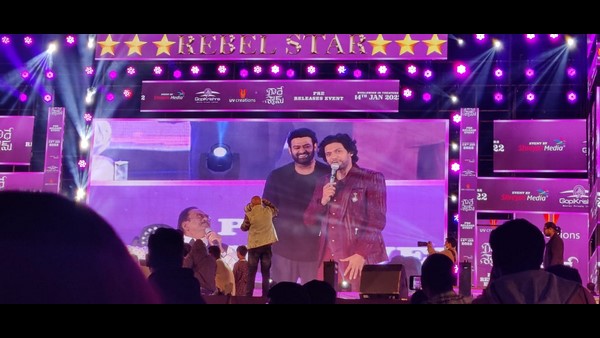 'ರಾಧೆಶ್ಯಾಮ್' ಟ್ರೈಲರ್ ಲಾಂಚ್ ಕಾರ್ಯಕ್ರಮವನ್ನು ಅದ್ಧೂರಿಯಾಗಿ ಆಯೋಜಿಸಲಾಗಿತ್ತು. ದೊಡ್ಡ ವೇದಿಕೆಯಲ್ಲಿ ಡಾರ್ಲಿಂಗ್ ಪ್ರಭಾಸ್, ಪೂಜಾ ಹೆಗ್ಡೆ ಪ್ರಮುಖ ಆಕರ್ಷಣೆಯಾಗಿದ್ದರು. ಈ ವೇಳೆ ಟ್ರೈಲರ್ ಲಾಂಚ್ನಲ್ಲಿ ಮತ್ತೊಂದು ಆಕರ್ಷಣೆ ಅಂದರೆ, ಅದು 'ಜಾತಿ ರತ್ನಲು' ಸಿನಿಮಾದ ನಟ ನವೀನ್ ಪೊಲಿಶೆಟ್ಟಿ ನಿರೂಪಕರಾಗಿ ಎಂಟ್ರಿಕೊಟ್ಟಿದ್ದರು. ಇವರ ಮಾತಿನ ಮೋಡಿಗೆ ಡಾರ್ಲಿಂಗ್ ಫ್ಯಾನ್ಸ್ ಫುಲ್ ಫಿದಾ ಆಗಿದ್ದರು. ನವೀನ್ ನಿರೂಪಣೆ ವೇಳೆ ಪ್ರಭಾಸ್ರಿಂದ ಕನ್ನಡ ಫ್ಯಾನ್ಸ್ಗೆ ಹಾಯ್ ಹೇಳಿಸಿದ್ದರು. ಈ ವೇಳೆ 'ಕೆಜಿಎಫ್ 2' ಸಿನಿಮಾ ಪ್ರಸ್ತಾಪ ಆಗಿದೆ.