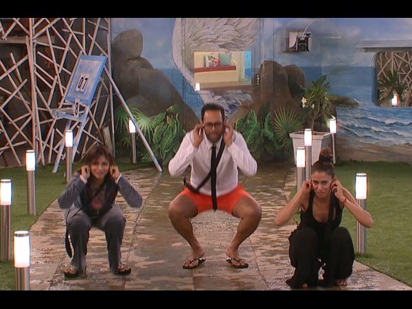 ಖುಷಿಯಿಂದಲೇ ನೂರು ಬಾರಿ ಕುಳಿತು ಏಳುವ ಕಾರ್ಯಕ್ಕೆ ಆಂಡಿ, ಶಿಲ್ಪಾ ಹಾಗೂ ತನೀಶಾ ರೆಡಿಯಾದರು.