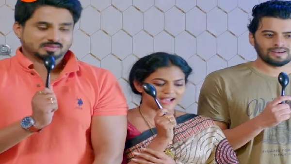 ಆದ್ಯ ಕೂಡ ಪಾಯಸು ತಿನ್ನಲು ಬಂದಿರುತ್ತಾಳೆ. ಅದೇ ಸಮಯಕ್ಕೆ ವೇದಾಂತ ಕೂಡ ಅಲ್ಲಿಗೆ ಮೆತ್ತಗೆ ಬರುತ್ತಾನೆ ಪಾಯಸವನ್ನು ತಿನ್ನುತ್ತಿರುವ ವೇಳೆ ಆದ್ಯ ಹೇಳುತ್ತಾಳೆ ಅಣ್ಣ ನಮಗೆ ಹೇಳಿ ಅವನೆ ಪಾಯಸ ತಿನ್ನುತ್ತಿದ್ದಾರೆ ಎಂದು ಹೇಳುತ್ತಾರೆ. ಬಳಿಕ ವಿಕ್ರಾಂತ್, ವೇದಾಂತ್ನ ಭುಜ ಮೆತ್ತಗೆ ಹಿಡಿಯುತ್ತಾನೆ ಇದನ್ನು ನೋಡಿದ ವೇದಾಂತ ಶಾಕ್ ಆಗುತ್ತಾನೆ. ಬಳಿಕ ಮೂರು ಜನರು ಕೂಡ ಮೆತ್ತಗೆ ಪಾಯಸವನ್ನು ಸವಿಯುತ್ತಿರುವ ವೇಳೆ ಅಲ್ಲಿಗೆ ವೈಜಯಂತಿ ಬರುತ್ತಾರೆ. ಯಾರಿದಿರಾ ಬನ್ನಿ ಹೊರಗಡೆ ಎಂದು ಹೇಳುತ್ತಾರೆ.