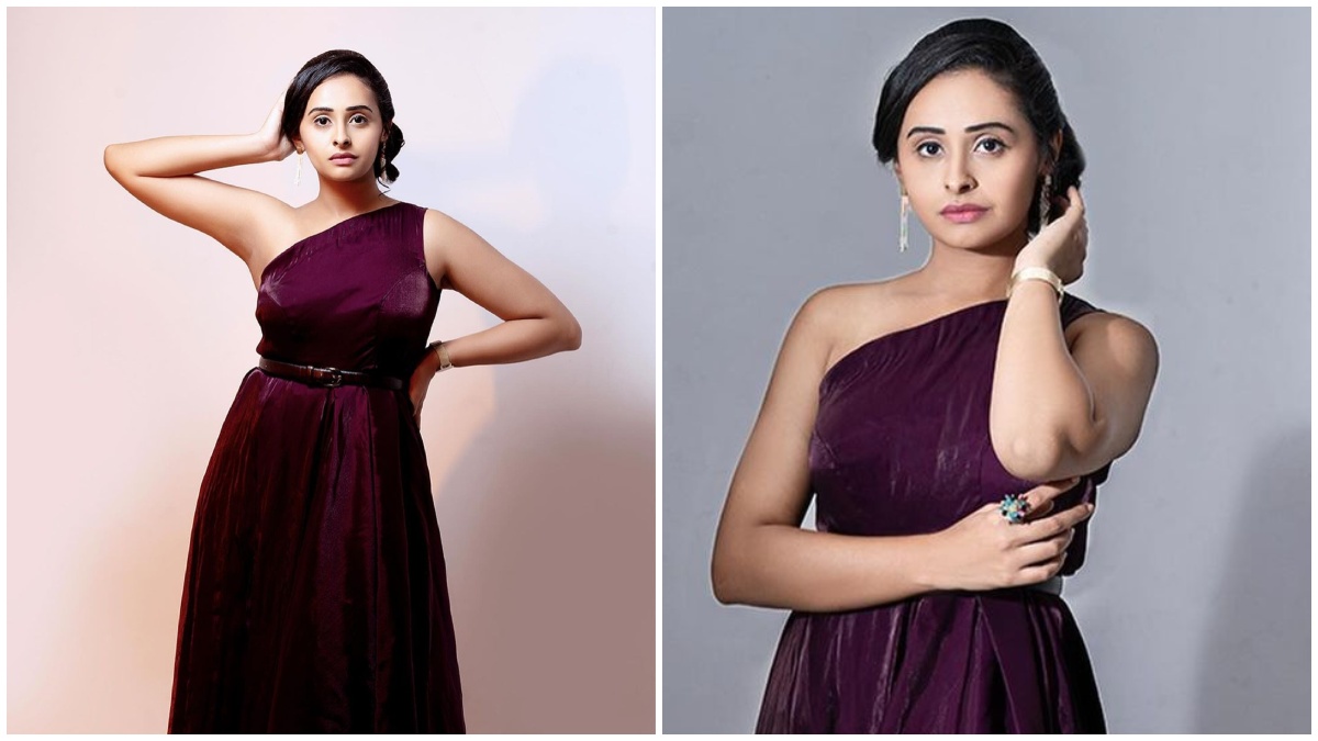 ವೈನ್ ಬಣ್ಣದ ಗೌನ್ನಲ್ಲಿ ಬೆಡಗಿ