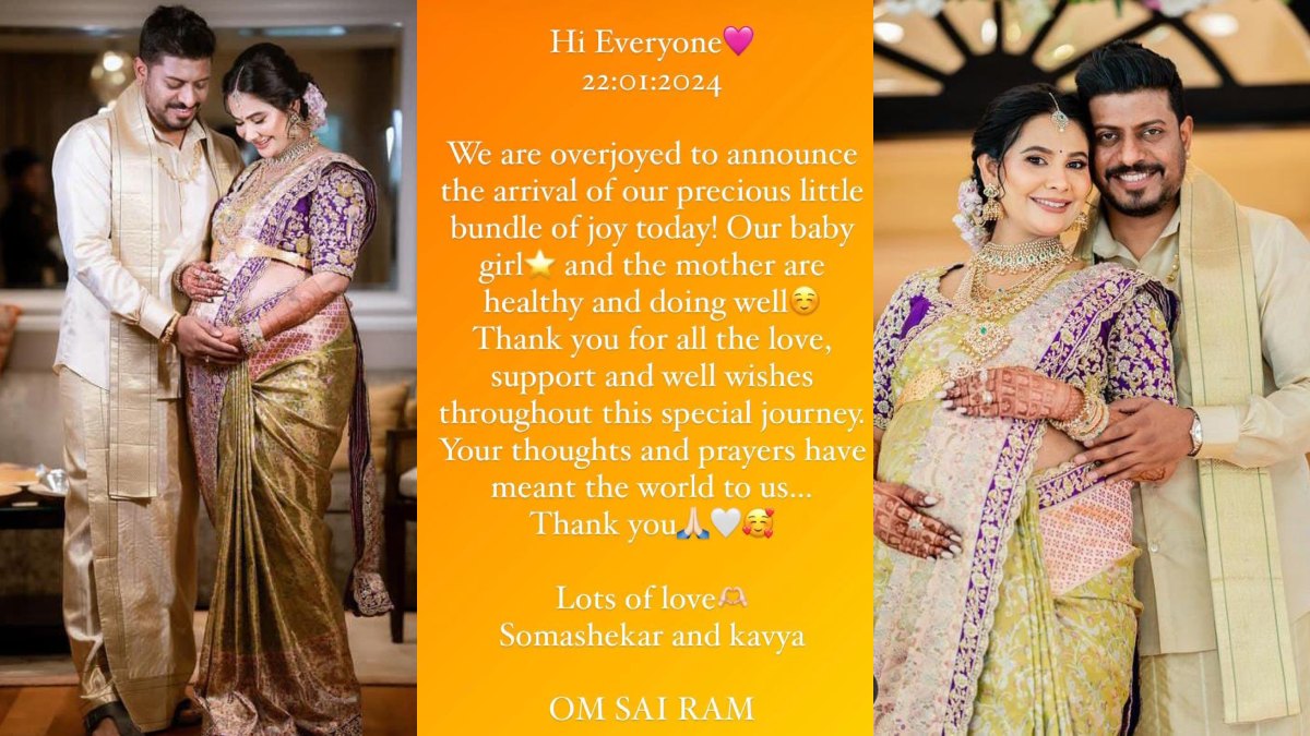 ಹೌದು, ಅಯೋಧ್ಯೆಯಲ್ಲಿ ಶ್ರೀರಾಮನ ಪ್ರಾಣ ಪ್ರತಿಷ್ಠಾಪನೆ ಆದ ದಿನವೇ ಮುದ್ದಾಗ ಹೆಣ್ಣು ಮಗುವಿಗೆ ಕಿರುತೆರೆ ನಟಿ ಕಾವ್ಯ ಗೌಡ ಜನ್ಮ ನೀಡಿದ್ದಾರೆ. ಈ ಸಂತಸದ ವಿಚಾರವನ್ನು ಸ್ವತಃ ಕಾವ್ಯ ಗೌಡ ಅವರೇ ತಮ್ಮ ಇನ್ಸ್ಟಾಗ್ರಾಂನಲ್ಲಿ ಬರೆದುಕೊಂಡಿದ್ದಾರೆ. "ನಮ್ಮ ಜೀವನದ ಅತಿ ಖುಷಿಯಾದ ಕ್ಷಣವನ್ನು ನಿಮ್ಮೊಟ್ಟಿಗೆ ಹಂಚಿಕೊಳ್ಳಲು ತುಂಬಾ ಖುಷಿಯಾಗುತ್ತಿದೆ. ನಮಗೆ ಹೆಣ್ಣು ಮಗುವಾಗಿದೆ. ತಾಯಿ ಮತ್ತು ಮಗು ಆರೋಗ್ಯವಾಗಿ ಇದ್ದೇವೆ" ಎಂದು ಬರೆದುಕೊಂಡಿದ್ದಾರೆ.