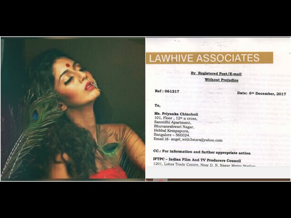 ಅಂಗ್ರಿಮೆಂಟ್ ನಲ್ಲಿ ಒಪ್ಪಿರುವಂತೆ ನಡೆದುಕೊಂಡಿಲ್ಲ ಎಂದು 'ಟ್ರೈ ಆಂಗಲ್ ಫಿಲ್ಮ್ ಕಂಪನಿ'ಯಿಂದ ಪ್ರಿಯಾಂಕ ಅವರಿಗೆ ನೋಟೀಸ್ ನೀಡಲಾಗಿದೆ. ನೋಟೀಸ್ ನಲ್ಲಿ ಪ್ರಿಯಾಂಕ ಮಾಡಿರುವ ತಪ್ಪುಗಳನ್ನ ನಮೂದಿಸಲಾಗಿದೆ.