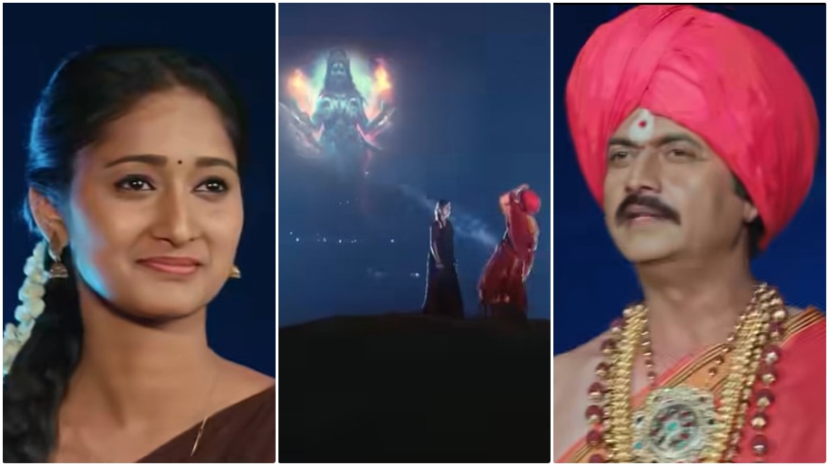 ದುರ್ಗಾಳನ್ನು ಕಂಡ ಅಮೃತೇಶ್ವರ ಸ್ವಾಮಿಗಳು ಇಂದೇ ನಿನ್ನ ಅಂತ್ಯ ಎಂದಾಗ, ದೇವಿಯೂ ಯಾವ್ ಯಾವಾಗ ಹೆಣ್ಣಿ ಅಂತ್ಯ ಎಂದಿದ್ದಾರೋ ಹಾಗೆಲ್ಲ ಹೊಸ ಜಗತ್ತೆ ಸೃಷ್ಟಿಯಾಗಿದೆ ಎಂದು ಅರಿವು ಮೂಡಿಸಿದ್ದಾಳೆ. ಆದರೂ ಬಗ್ಗದ ಅಮೃತೇಶ್ವರ, ನೀನು ನನ್ನ ಚರಣ ಸೇವಕಿಯಾದರೆ ಆ ದೇವಿಯೇ ನನ್ನ ಸೇವಕಿಯಾದಂತೆ ಎಂದು ಮುಟ್ಟಲು ಹೋದಾಗ ಅವನ ಕೈಗೆ ಶಾಕ್ ಹೊಡೆದಿದೆ.